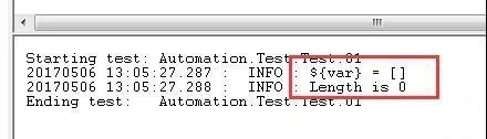 如上图,create list是一个创建列表的函数,我们没有为列表赋值,则${var}是一个空列表,运行: