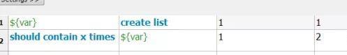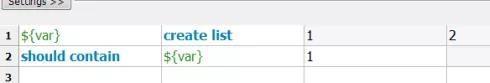 这里先说明一下,列表变量也可以用@{var}表示,但${var}既可以表示单个变量,也可以表示列表、字典,用起来比较方便~~~ 我们创建了一个列表,内涵1、2、3值,断言列表中含有1: