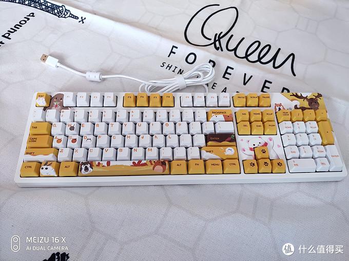 这键盘现在还有点尾货在卖,100出头就能买到,我当时400多买的,图上的键帽是前段刚换的黑爵PBT。