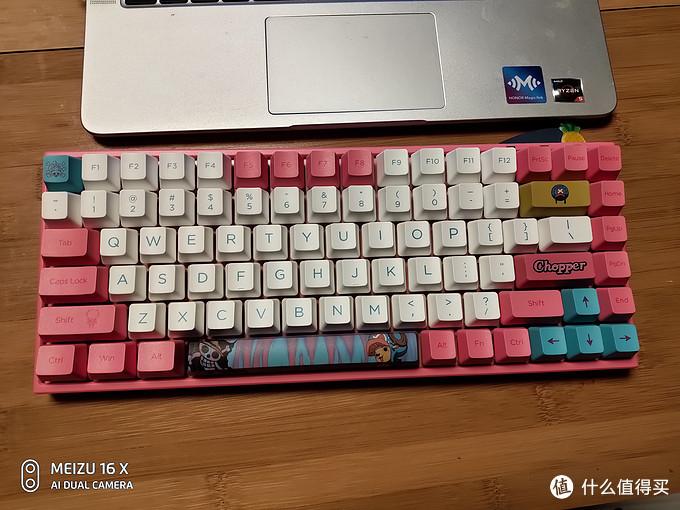 我的第一把双模键盘,也是第一把84配列的键盘。虽然不看海贼王,但是很喜欢这个外观,现在这把键盘我爱人每天上班和笔记本一起背着。基本同事看了也都夸好看。尤其是这个大字符看起来着实舒服。
