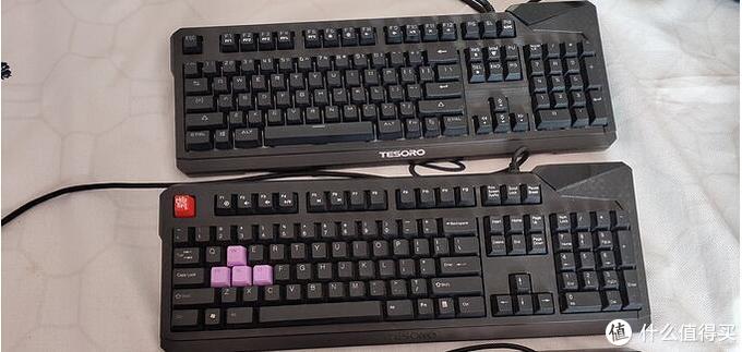 论坛征文活动一等奖的奖品,其实原版应该是紫色的,混彩是店家改的,这把键盘的键帽非常有特点,键盘的右上角有一个按键,可以开启专门的游戏模式。数字区的按键又是另一种表面材质。