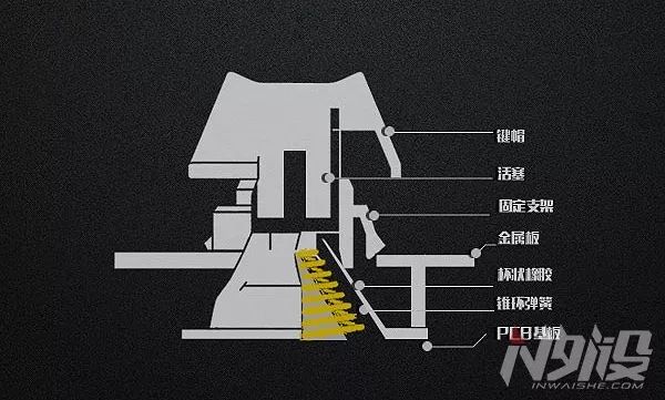 区别于薄膜键盘与机械键盘,静电容键盘是利用电容容量的变化来判断按键的开和关,在按下按键后,开关中电容容量发生改变,从而实现触发,整个过程不需要开关的闭合。正是由于无物理接触点就可以实现敲击,因而磨损更小,使用寿命甚至远超MX轴开关的5000万次敲击,而且更稳定、迅速、全键无冲突、无比灵敏。其中,根据检测与控制改变电容容量的方式,又可以分为平行式触发结构与垂直式触发结构。前者采用左右水平两个电极,利用装在键帽中的弹簧结构,随着敲击过程中弹簧的上下移动, 水平两个电极的距离也会改变,以此来检测电容值的变化。后者是上下垂直两个电极,键帽中无弹簧结构,直接通过敲击过程中纵向间隙的空气层厚薄变化来改变电容值,以此判断键值。