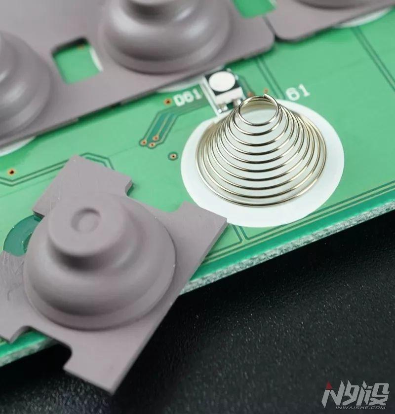 Topre静电容键轴总成设计比较独特,PCB基板集成电容传感器,键轴主体部分则由橡胶腕、锥形弹簧、轴柱组成,无传统物理触点,理论寿命更高。相对来说,后期也不易出现连击、失灵情况。其中,静电容键盘按键压力取决于键轴内部这个锥形弹簧。而分区压力设计,也是静电容键盘亮点之一,使得键盘输入更为舒适。目前,市面上常见有30g、55g和45g键压,当中还细分有静音轴版本给予选择。