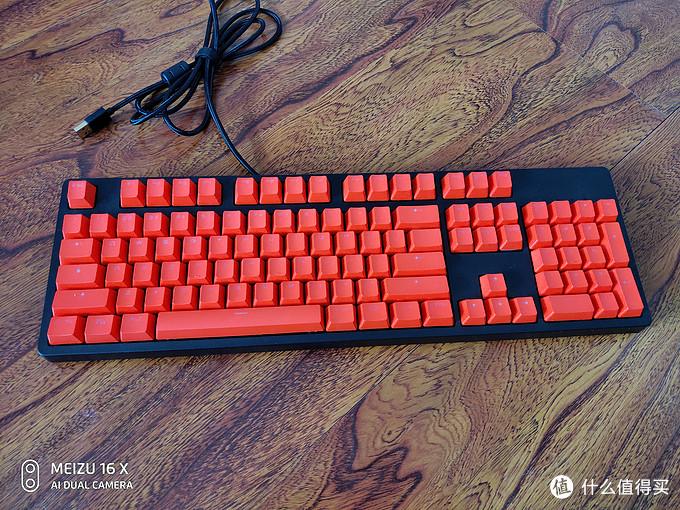 原本键帽是黑色的,后来换成了黑爵的红色键帽,好像砖块啊。
