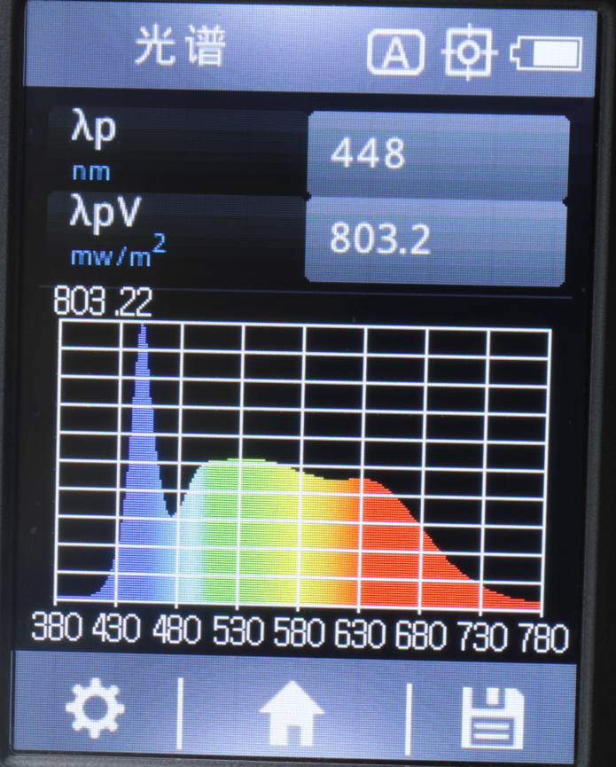 (测光仪精准显示了AD-2000B的色温、照度、显色性和特殊显指R9)