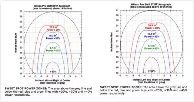 说明:同样是97SQ.IN.的拍面,2016款对比老款球拍甜区稍稍有些“缩水”,与之相对要求使用者对于精准度的掌握也更高了,对于初学者而言上手比较困难。