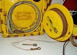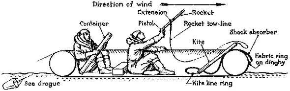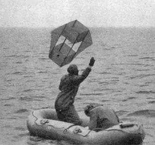 地线由10英尺长的不锈钢丝组成,终止于沉降片,从小艇的侧面下降到大海中。当缺少风(小于13英里/小时)不允许使用风筝时,3英尺的气球用氢气发生器充气,锡罐带有单独的充气管。当打开时,通过化学固体(氢化锂或氢化钙)与水接触产生氢气。充气管上的绝缘把手为手提供了保护,因为在此过程中产生了相当多的热量。