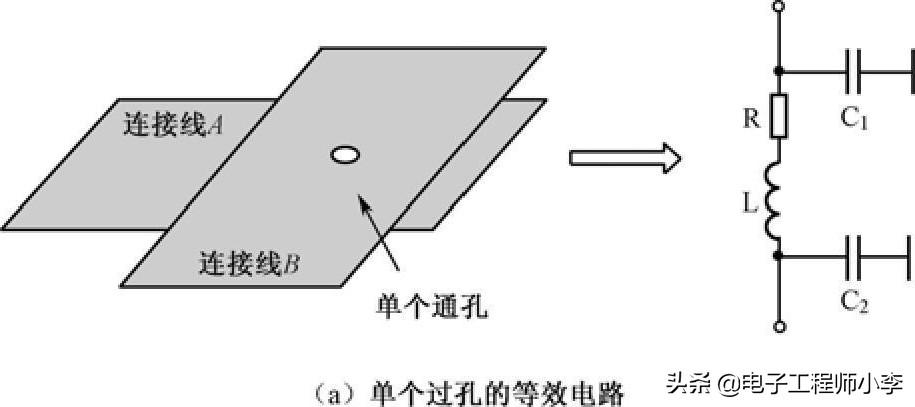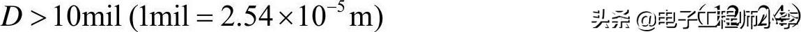为减小R和L的值,应尽可能地增加通孔直径。理想过孔的直径D应该为