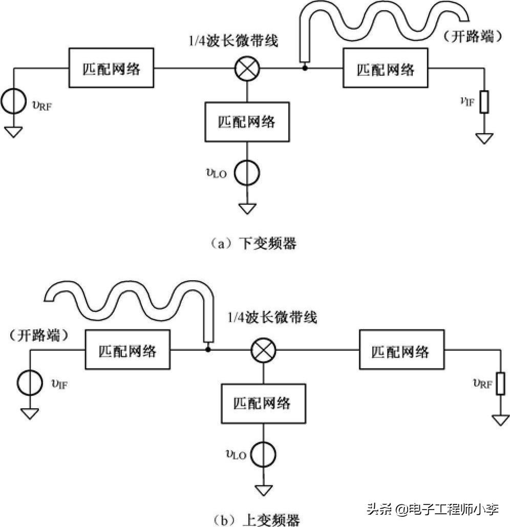 利用开路线在离开路端为λ/4奇数倍的点处输入阻抗为0(相当于短路)这一特性,可以实现变频器的隔离,示意图如图12-46所示。