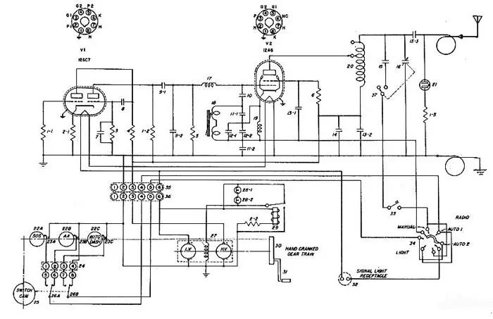 T1133型电路图基本上与原德国NS2和NS2a非常相似,500 kHz时采用晶体控制振荡器-RV输出电子管6V6G,第二电子管(6J7G)作为1000 Hz音频振荡器 - 调制器。即使中断器和选择器系统被复制,主要区别在于使用另一种类型的振荡器电路。手动发电机输出6伏LT和350伏HT。在MCW或CW操作中,RF功率被指定为5瓦。提供SOS或手动键控的自动传输。它的重量只有22磅,不包括火箭风筝设备。通过自动传输,SOS遇险信号重复三次,然后是十二次长划线,只要发射机工作,信号发射就会继续。
