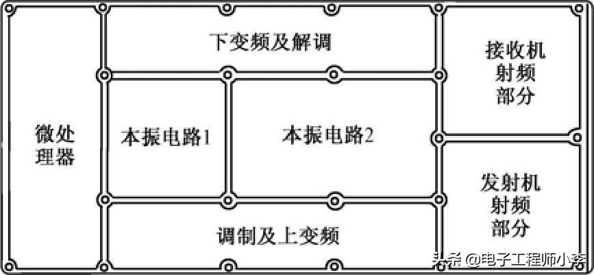 在一个复杂的射频系统中,存在三种类型的隔离,即RF模块间的隔离、数字模块间的隔离,以及RF模块和数字模块间的隔离。除了PA模块必须特殊处理外,RF模块间的隔离和数字模块间的隔离有类似的难点,也有相同的解决方案。RF模块和数字模块间的隔离要稍微复杂一些。由于RF模块的功率通常要远远大于数字模块的功率,故一般RF模块的电流是mA级,而数字模块中的电流是μA级。从功率角度来看,RF模块会对数字模块产生干扰。从频率观点来看,数字模块的脉冲信号是一个宽频带信号,包含多次谐波的高频成分,其中也可能包含RF信号的频率成分。数字模块会对RF模块产生干扰。因此,RF模块和数字模块间的隔离要比其他情况都要更困难一些。
