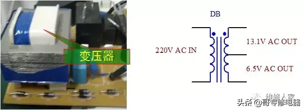 1、 代表符号T,用于将交流220V电压转变为供给电脑板使用的12V低压电源。