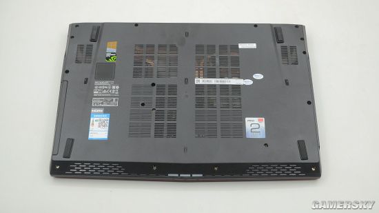 微星GP72VR 7RF的底部采用了非常开放的大面积缕空网孔设计,在增强游戏笔记本的散热效能的同时,用户甚至可以较为清楚的看见游戏笔记本内部的硬件。