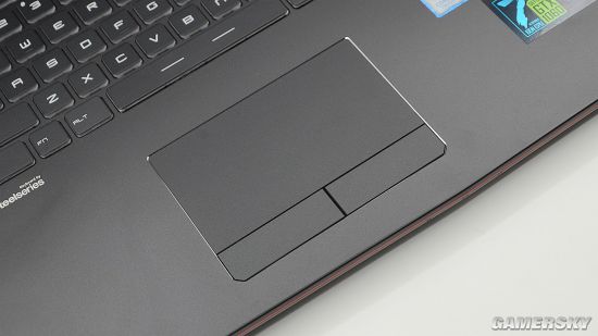 键盘下方依然是超大面积的触摸控板,虽然是游戏用户根本用不到设计,但伴生的特大手托位在某些特定场合下,没有放鼠标的地方时,用来放鼠标还是不错的。