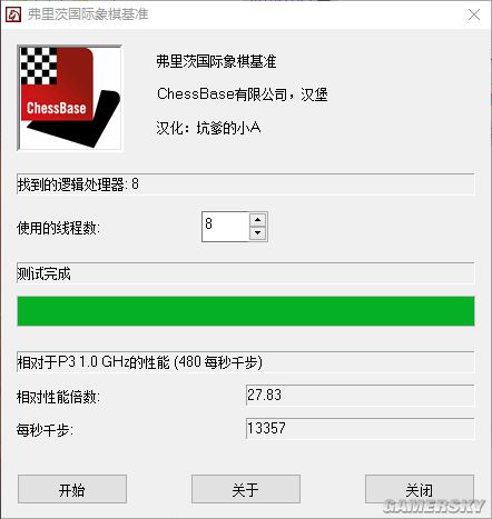 Fritz Chess(国际象棋)考验的是CPU的整数运算性能,对多核心优化良好,对浮点不敏感,可以作为CPU实力的一部分。该软件主要用于测试CPU的AI运算性能、多线程处理能力。