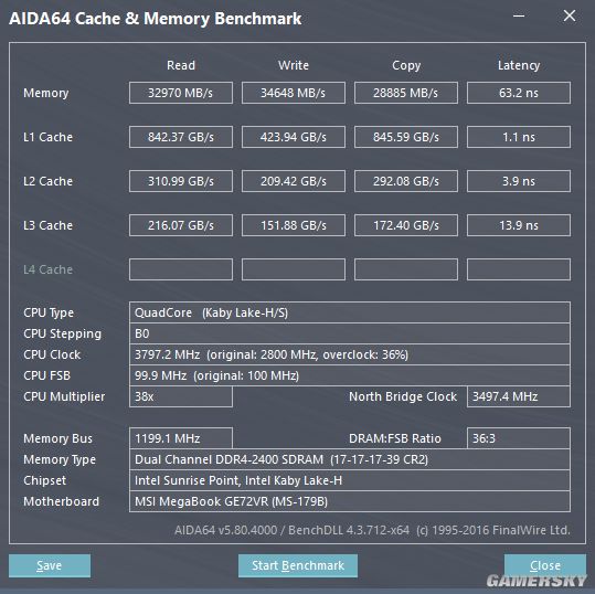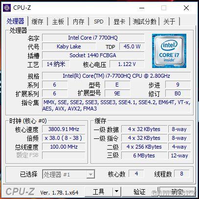 微星GP72VR 7RF采用了Intel最新的第七代酷睿处理器i7-7700HQ,四核八线程,默认频率2.8GHz,实际睿频达到了3.8GHz,TDP却只有45W,性能功耗比非常出色。