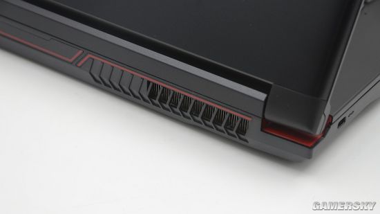 尾部采用了类似跑车尾翼造型设计,左右两侧各有一个散热出风口,对应两个散热风扇,为笔记本的主要散热口。