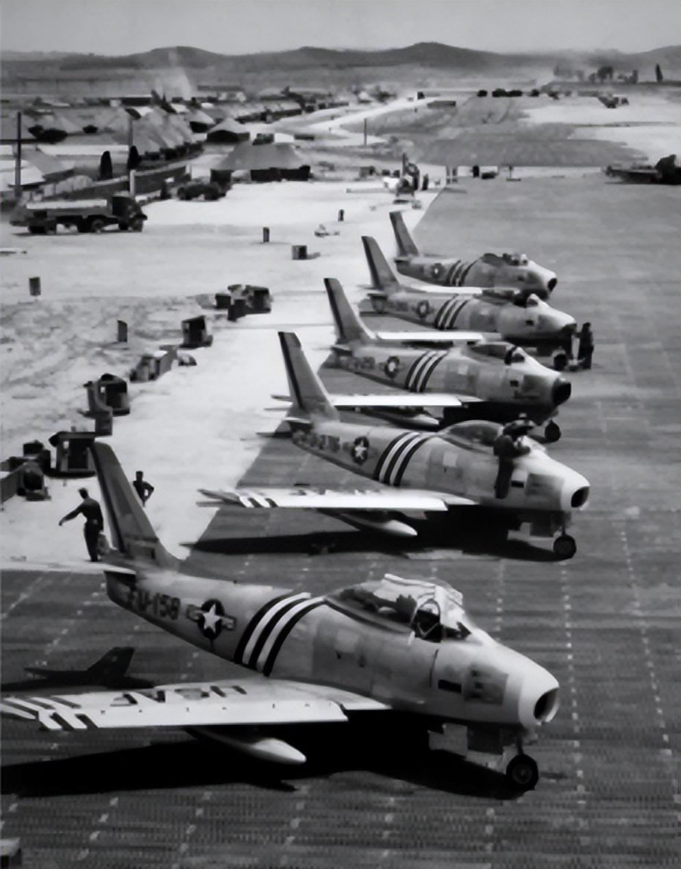 1951年朝鲜半岛美国空军基地内的F-86战斗机