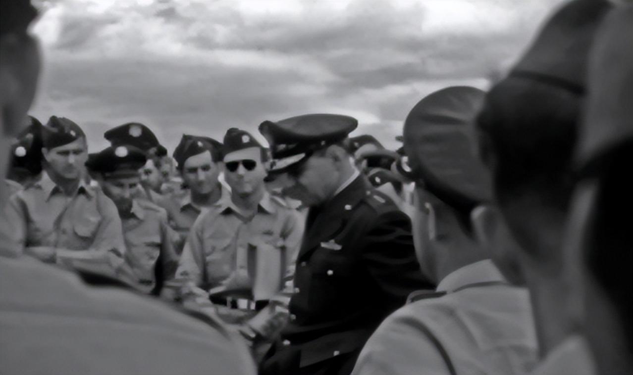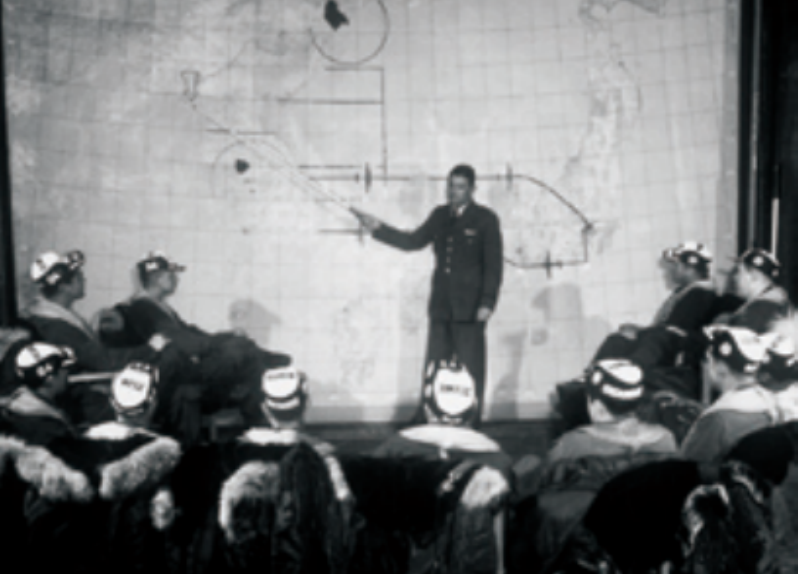 行动开始前,美国空军第98轰炸机大队的情报官正在为大队人员讲解任务
