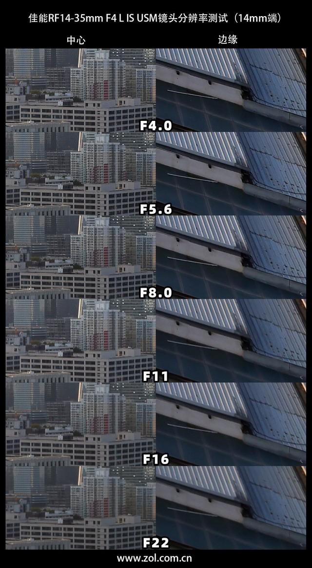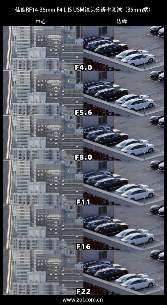 接下来是佳能RF14-35mm F4 L IS USM镜头35mm端在各档光圈下的画质表现。