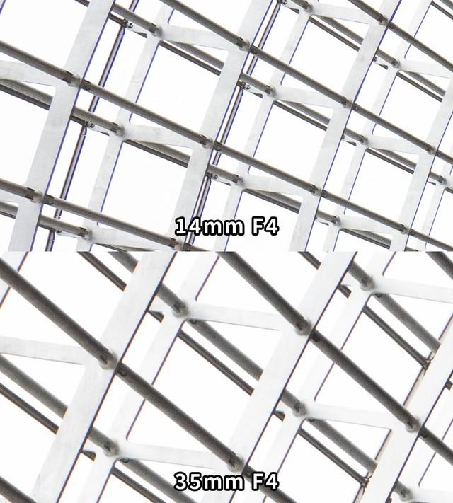 在广角14mm端,画面会出现一定的桶形畸变;在35mm端时,变形非常轻微。在实际拍摄中,由于透视关系的影响,使用14mm超广角容易产生变形,但视觉冲击力也会更强烈,同时在后期中也可以对变形进行校正。