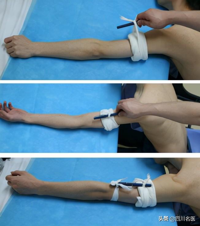 注意了!不是绑在前臂,绑前臂会加重出血。同时,为了保证手不坏死,止血带不能绑的太紧,每隔1小时要放松5~10分钟。