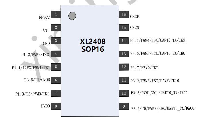 XL2408芯片是工作在2.400~2.483GHz世界通用ISM频段,集成微控制器的SOC无线收发芯片。该芯片集成射频收发机、频率收生器、晶体振荡器、调制解调器等功能模块,并且支持一对多组网和带ACK的通信模式。发射输出功率、工作频道以及通信数据率均可配置。芯片已将多颗外围贴片阻容感器件集成到芯片内部。容易过FCC等认证。ESD主要管脚>8000V,其余管脚>6000V。
