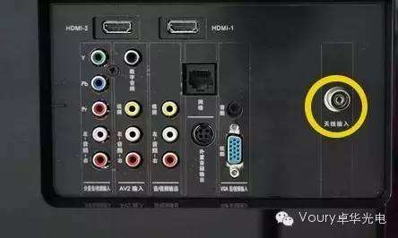 TV接口又称RF射频输入, 此接口为模拟信号接口, 这是最早出现在电视机上的接口,也是目前国内应用最广泛的电视接口, 目前家庭有线电视采用的就是这种接口模式 ,可以说是最接地气的TV接口了。