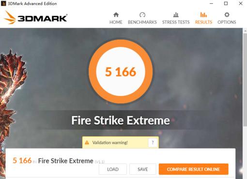 3DMark跑Fire Strike Extreme的得分为5166分。