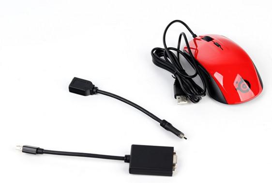 产品附送了赛睿鼠标,同时附送了两根转接线,可以分别转接VGA和常用的USB接口。
