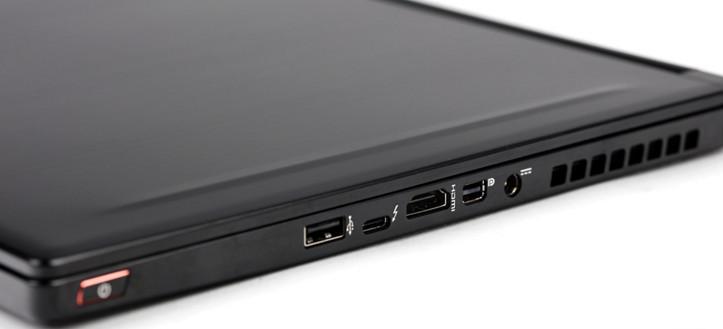 机身右侧依次有1个USB2.0,雷电接口,HDMI,mini DP,以及电源输入。