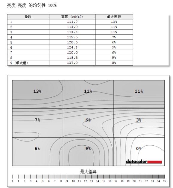 屏幕最大亮度为275cd/㎡左右,色温6440k非常接近6500k。