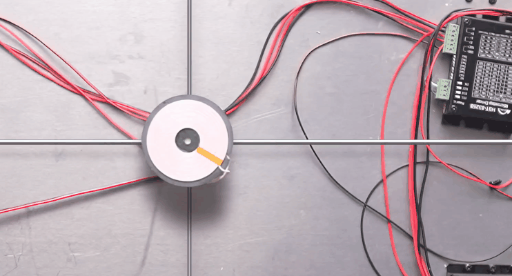 首先他做了一个双头卷线器。用这个来连电机。电机往外运动时。不会转着卷线器一起运动,而当电机往回走的时候,卷线器就会回到桌子的底座下。