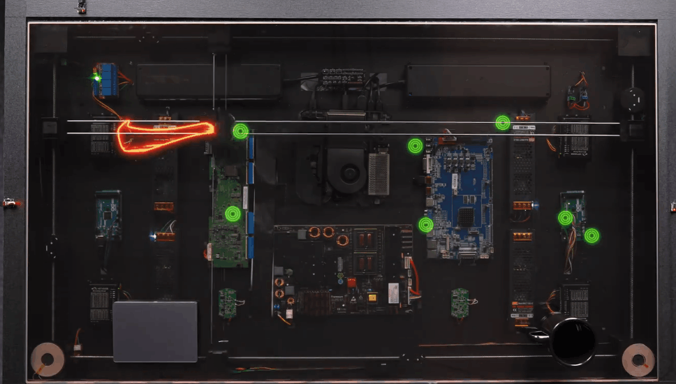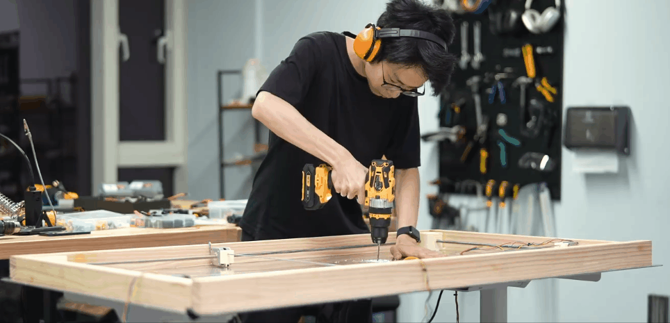 于是何同学决定自己做一个AirPower出来。而且体验要比苹果的更好,苹果是把手机放在板子上就能充电了。而他做了一个桌子那么大的AirPower,只要把手机放在桌子上就能充电。甚至可以把它当做一个正常的办公桌使用。