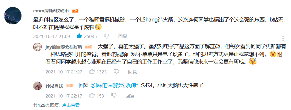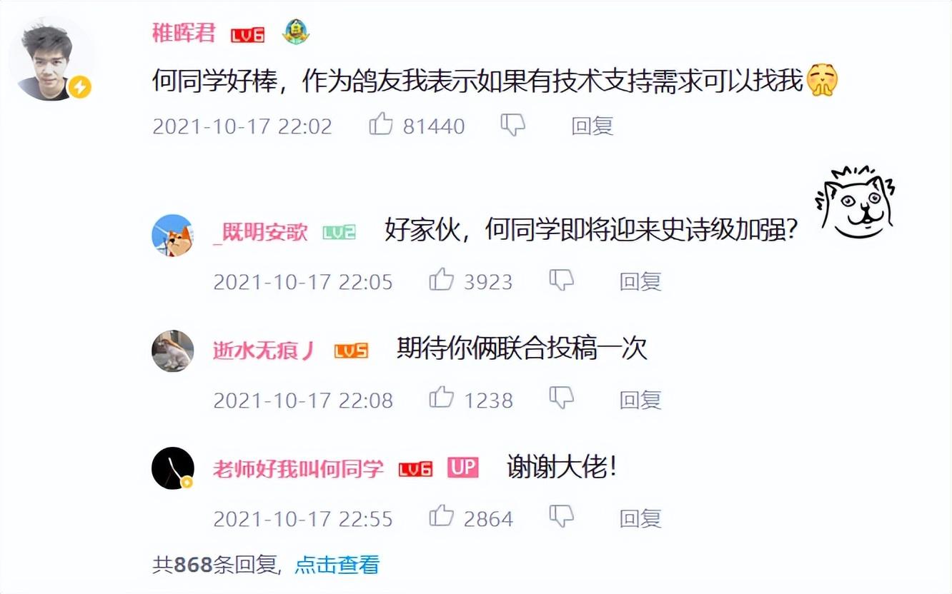 于是B站科技UP主稚晖君也来了。网友纷纷表示希望稚晖君能和何同学 来一次史诗级加强。
