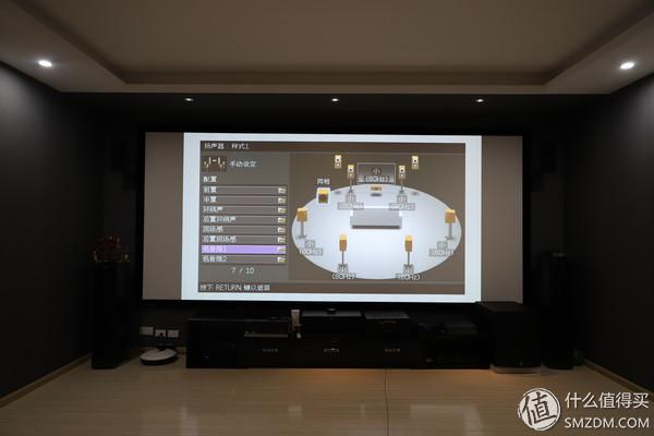 因为我幕较大,我挂的位置比说明书建议的1.8米更高,为2.2米,利用功放的对白位置提升,成功将对白提升到了接近画面中心的位置,同时也增大了整个前面声场的声音密度。