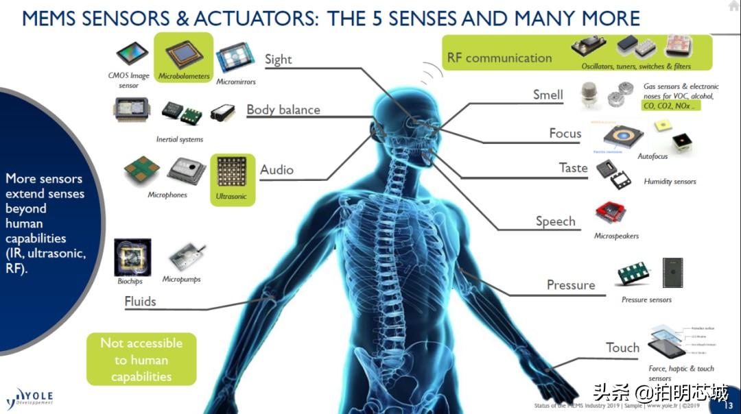 一我们以感官(眼、耳、口、鼻、舌、皮肤等器官)感知世间万物,而电子产品是以MEMS传感器和执行器实现类似“感官”监测或采集功能。