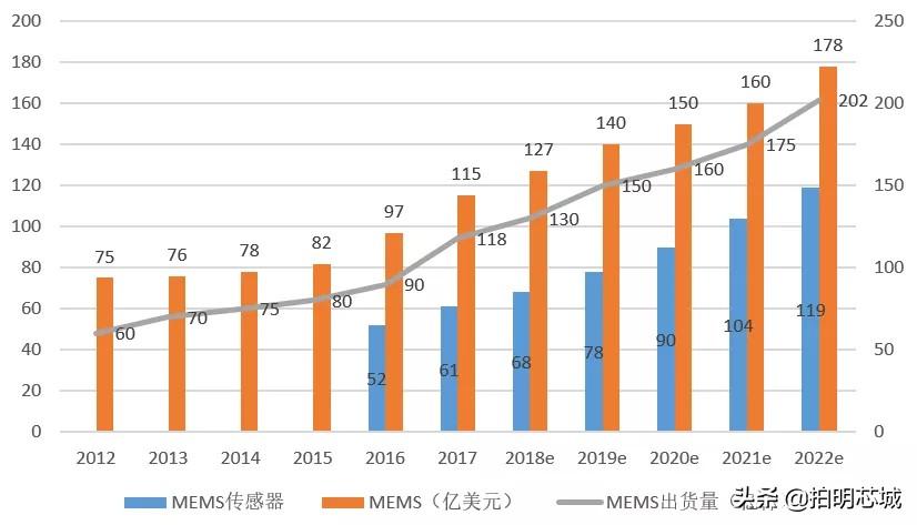 图3:全球MEMS市场规模统计及预测(来源:IC Insights)