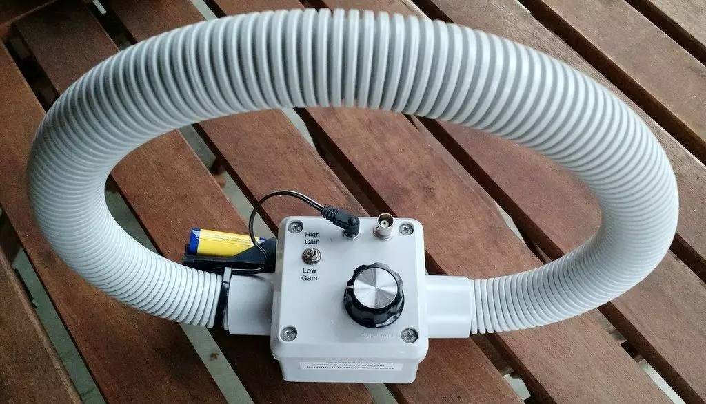 PK Loop 有一个附加的电池9V电池座,但实际上可以由任何9-18伏直流电源供电。 电流消耗小于15 mA。 在匹配盒上,您会发现调谐旋钮,BNC连接器,直流电源输入端口和HI / LOW增益开关。 我的回路附带了一个2米长的BNC-BNC电缆,3.5mm适配器和直流电源引线,以开放端。