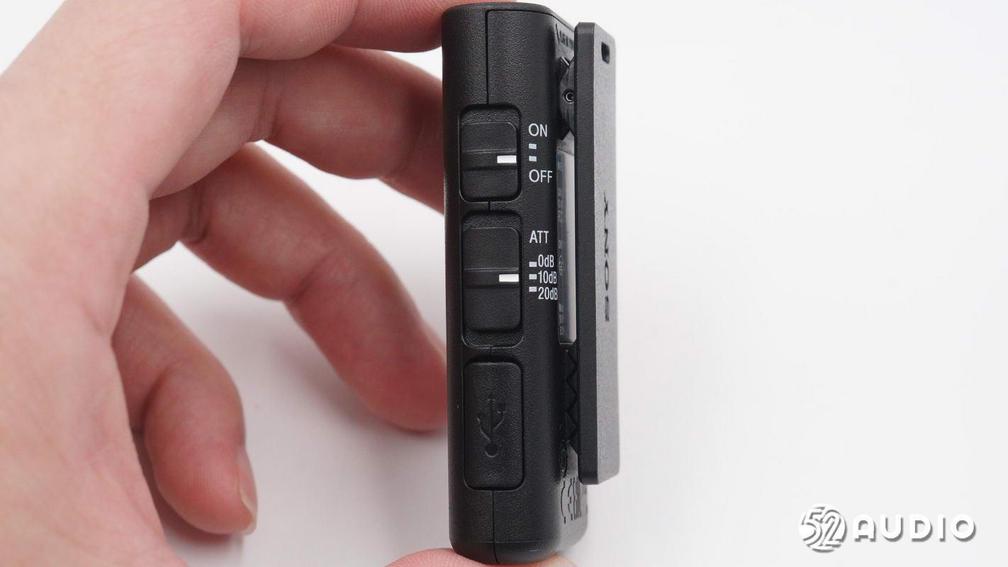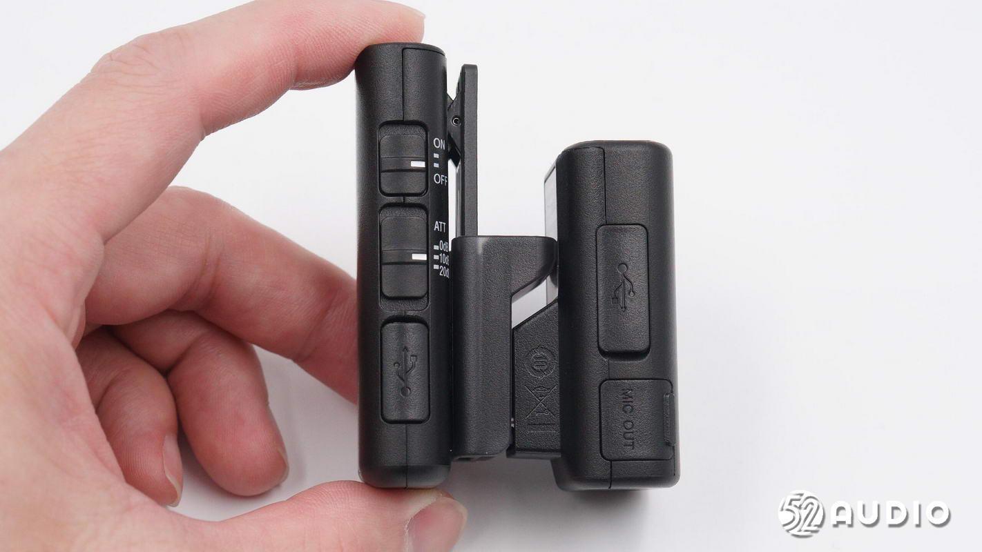 机身顶部设置1.1英寸OLED触摸屏,可以实时显示音量、电量等信息。右侧新增拨轮,用于调节发射器或接收器增益。
