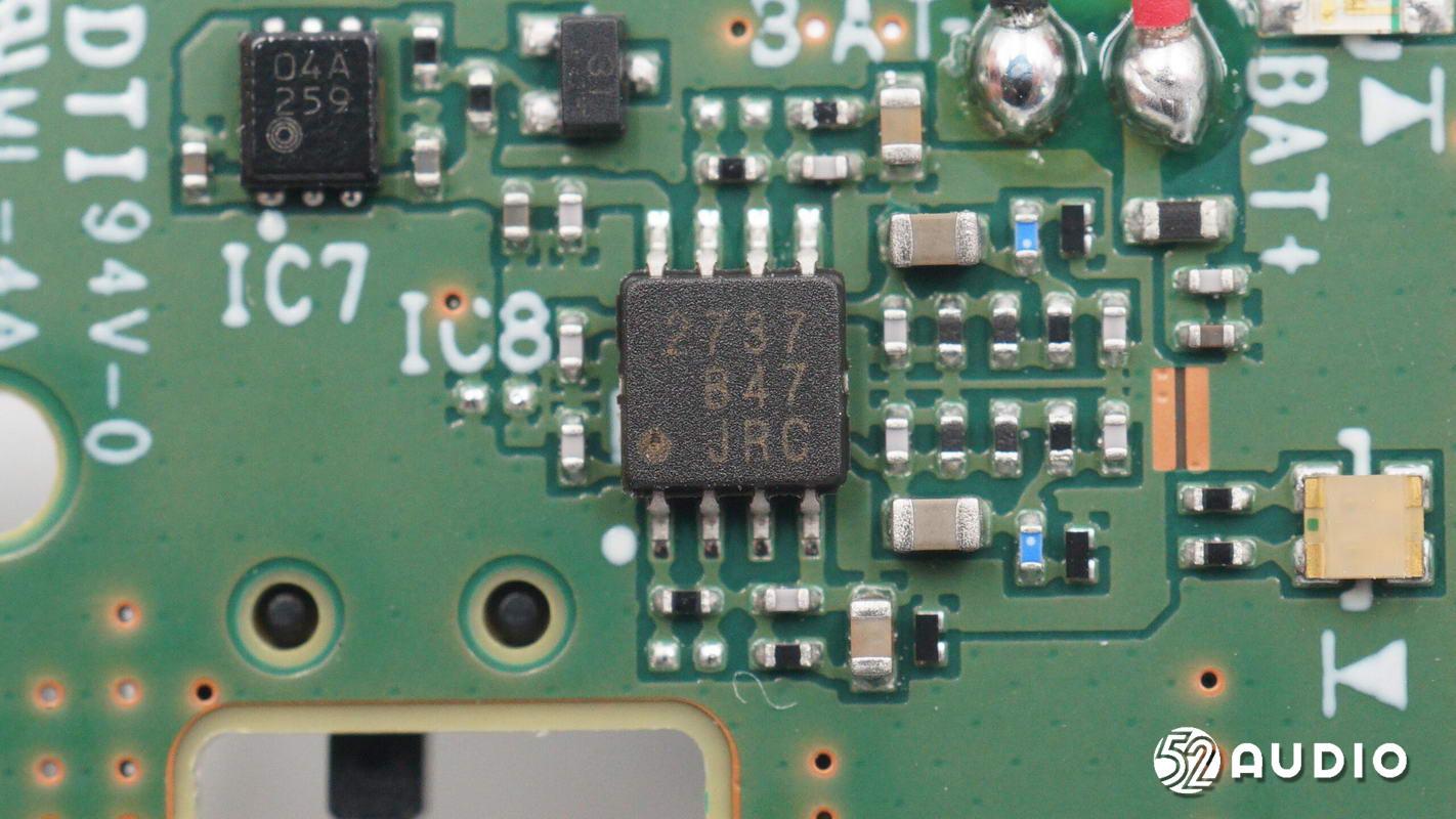 音频信号的放大采用了NJM2737双路运算放大器。接收器锂离子电池同样来自索尼,型号LIS1652HNPC,标称电压3.7V,额定容量175mAh/0.7Wh,最多提供9小时续航时长。