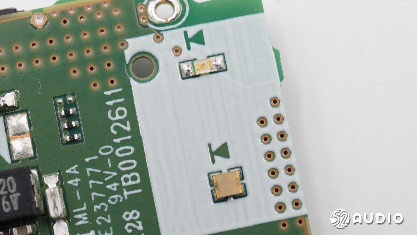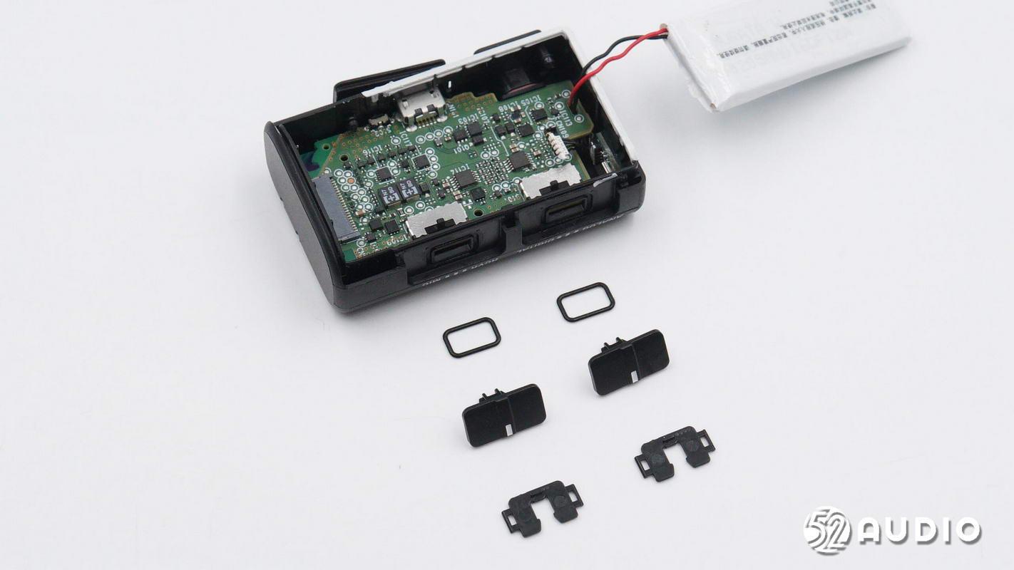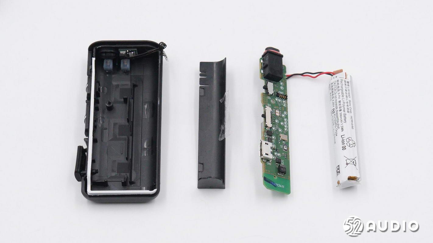 接收器前端使用了SKYWORKS思佳讯SKY66403-11高性能全集成射频前端,支持ZigBee,蓝牙以及蓝牙BLE应用。音频信号采用NJM2737双路运算放大器放大,实现声音增益。发射器锂离子电池来自索尼,型号LIS1643,标称电压3.7V,额定容量390mAh/1.5Wh,能够为发射器提供至多9小时的续航时长。