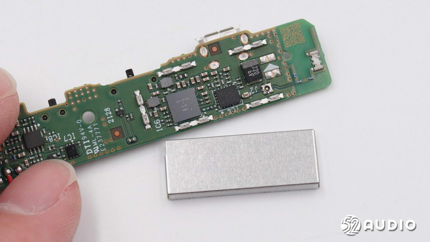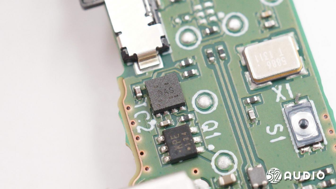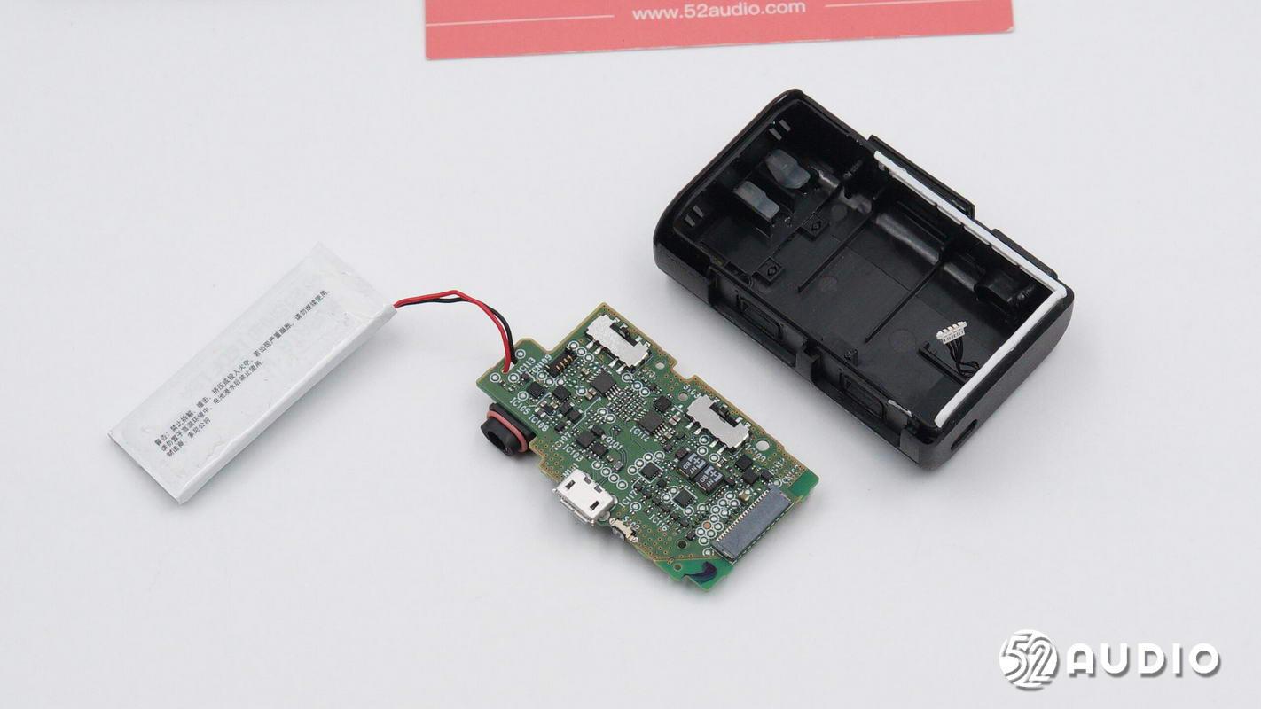 接收器前端使用了SKYWORKS思佳讯SKY66403-11高性能全集成射频前端,支持ZigBee,蓝牙以及蓝牙BLE应用。音频信号采用NJM2737双路运算放大器放大,实现声音增益。发射器锂离子电池来自索尼,型号LIS1643,标称电压3.7V,额定容量390mAh/1.5Wh,能够为发射器提供至多9小时的续航时长。