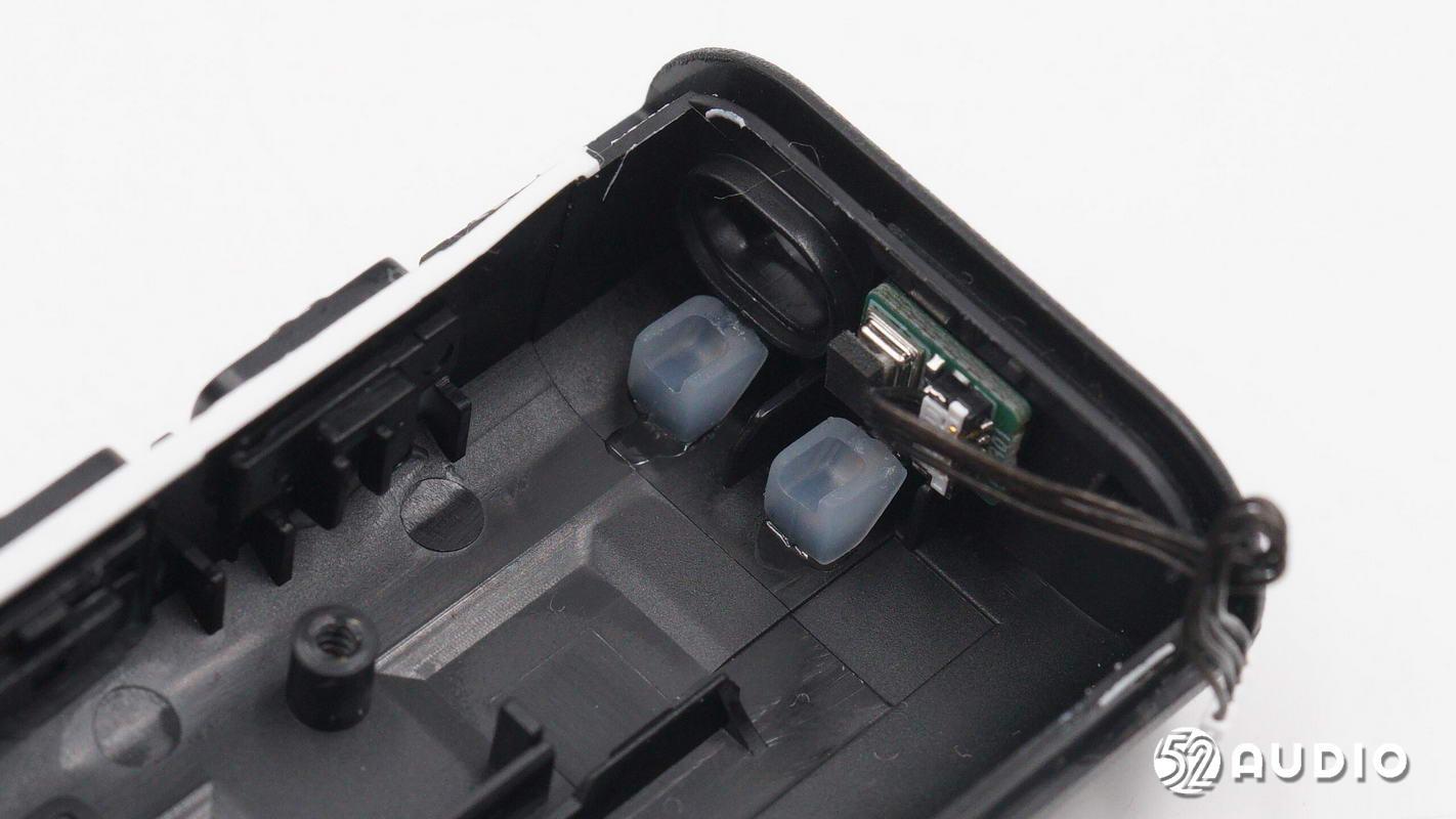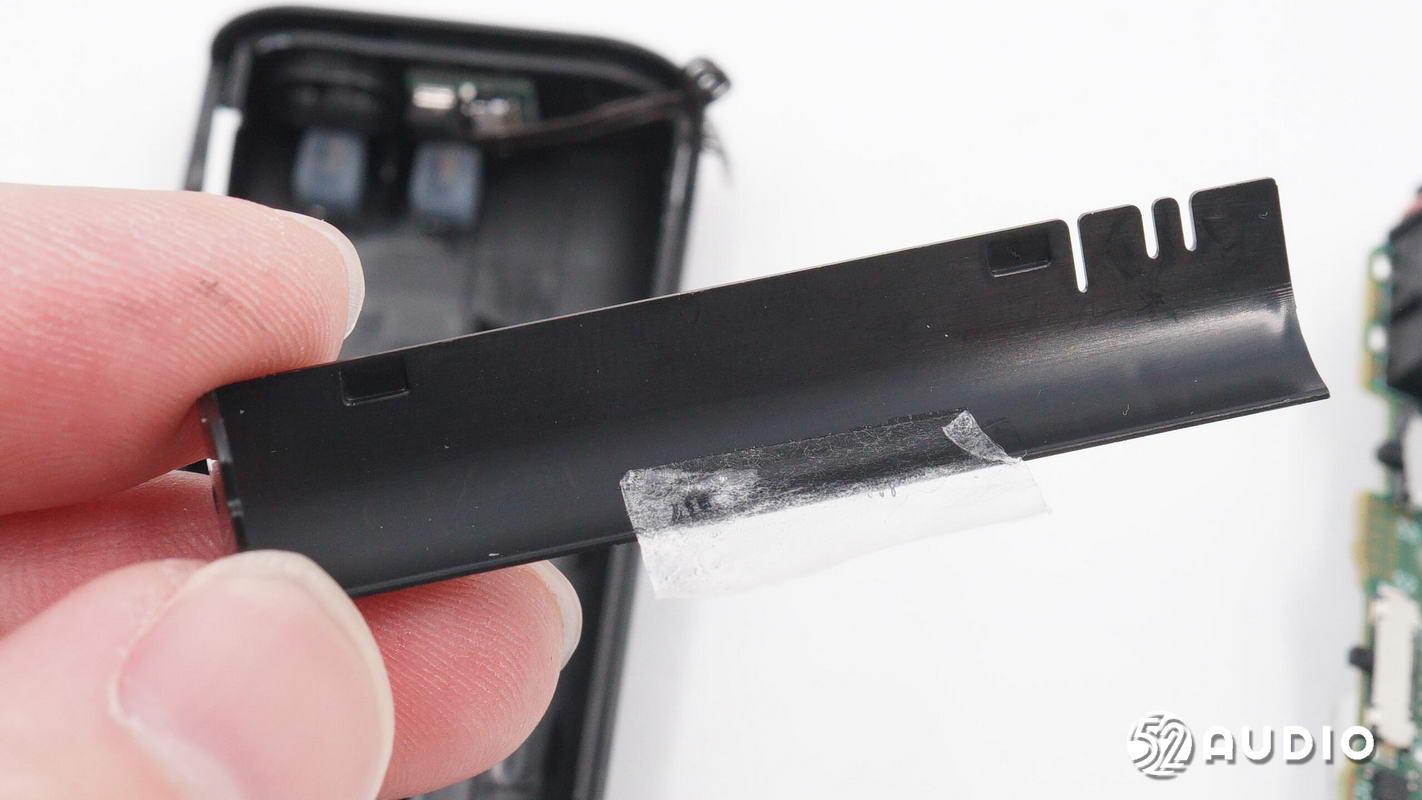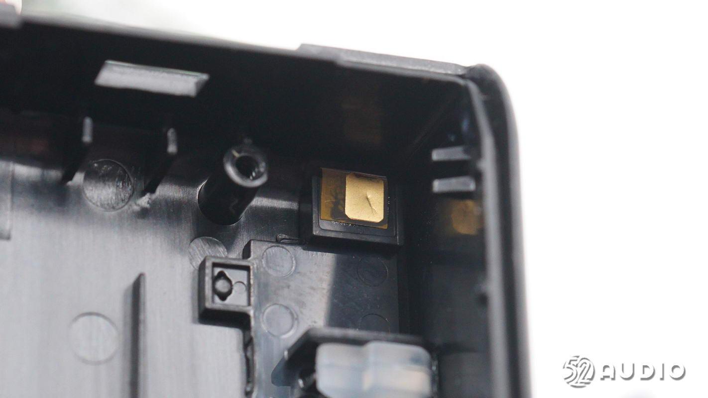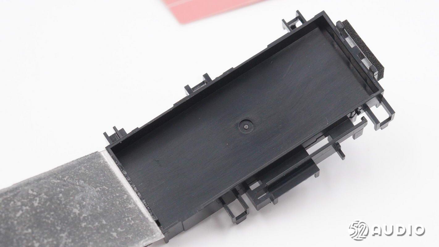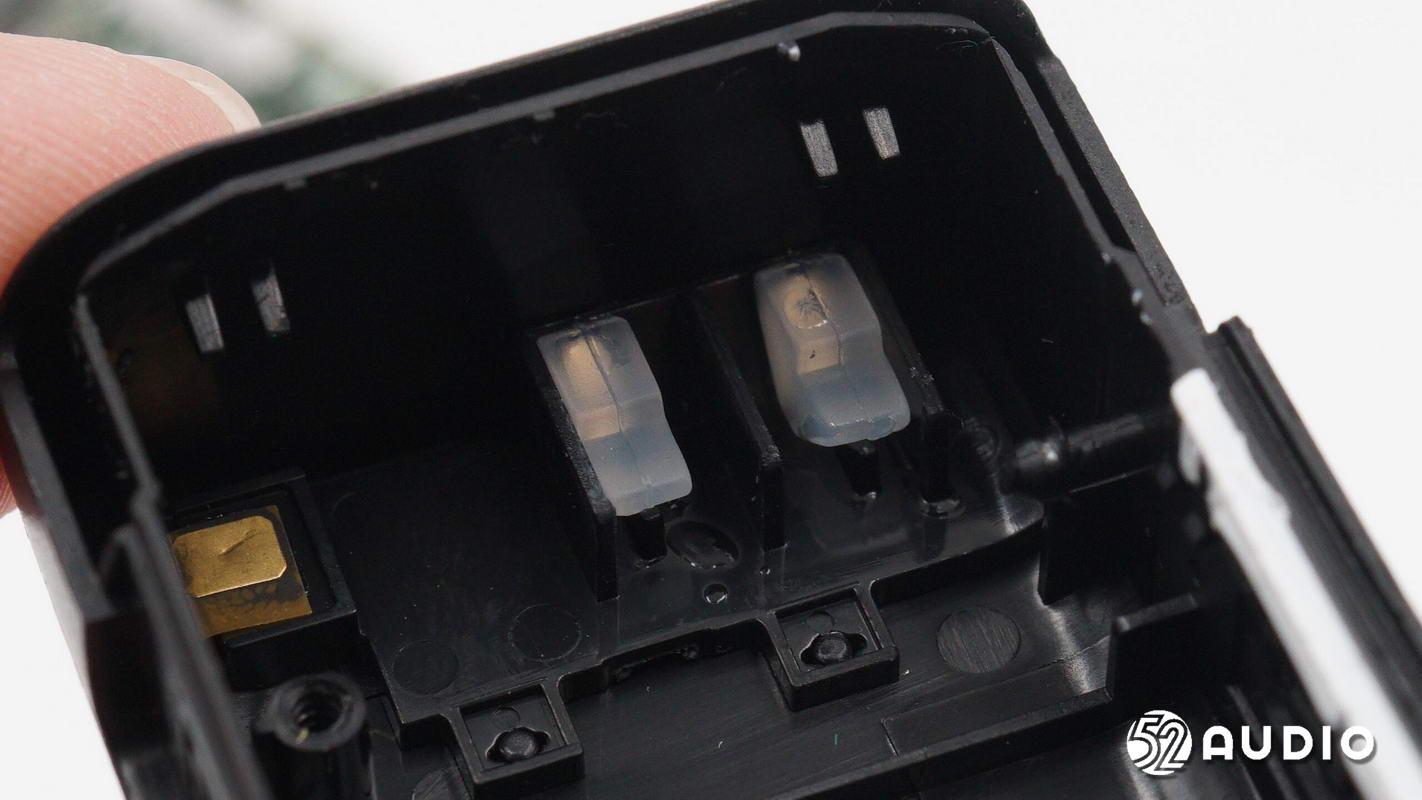 发射器内的分隔板特写,针对电池的形状进行设计,最大程度减少发射器内部空间占用。