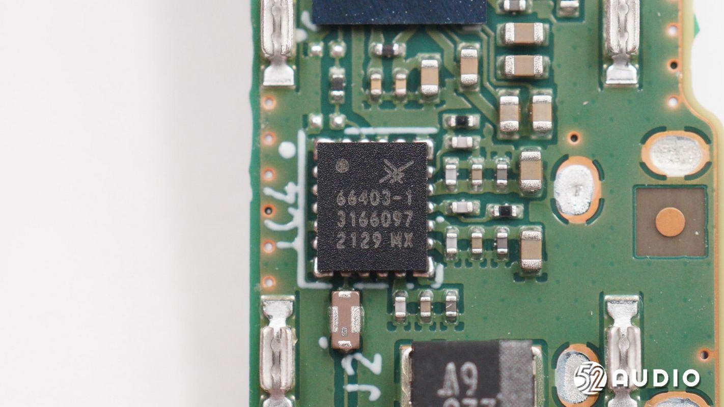 内部配置方面,接收器同样采用了Qualcomm高通CSR8675单芯片蓝牙音频SoC,实现主动降噪。射频前端依然是SKYWORKS思佳讯型号SKY66403-11,支持ZigBee,蓝牙以及蓝牙BLE应用。