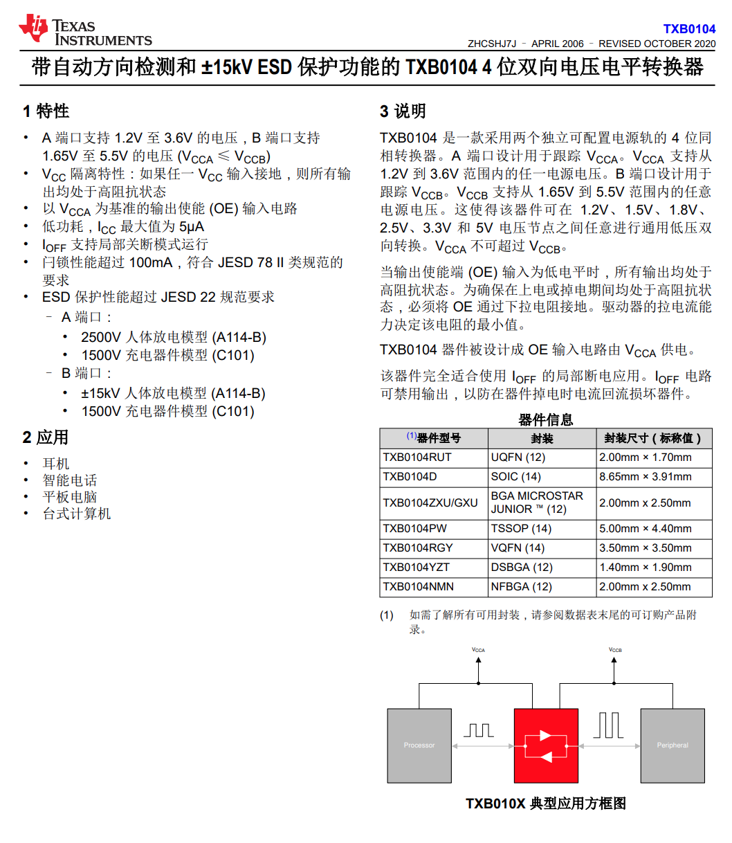 TI TXB0104 双向四位电压电平转换器,用于与相机Mi接口信号电平转换。