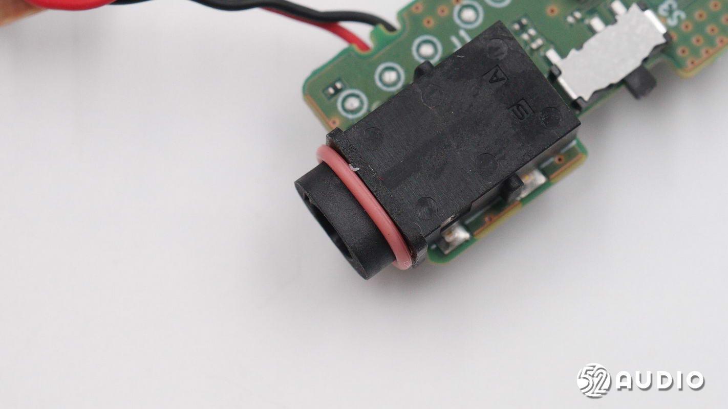 3.5mm音频接口特写,有防水防尘的胶圈。
