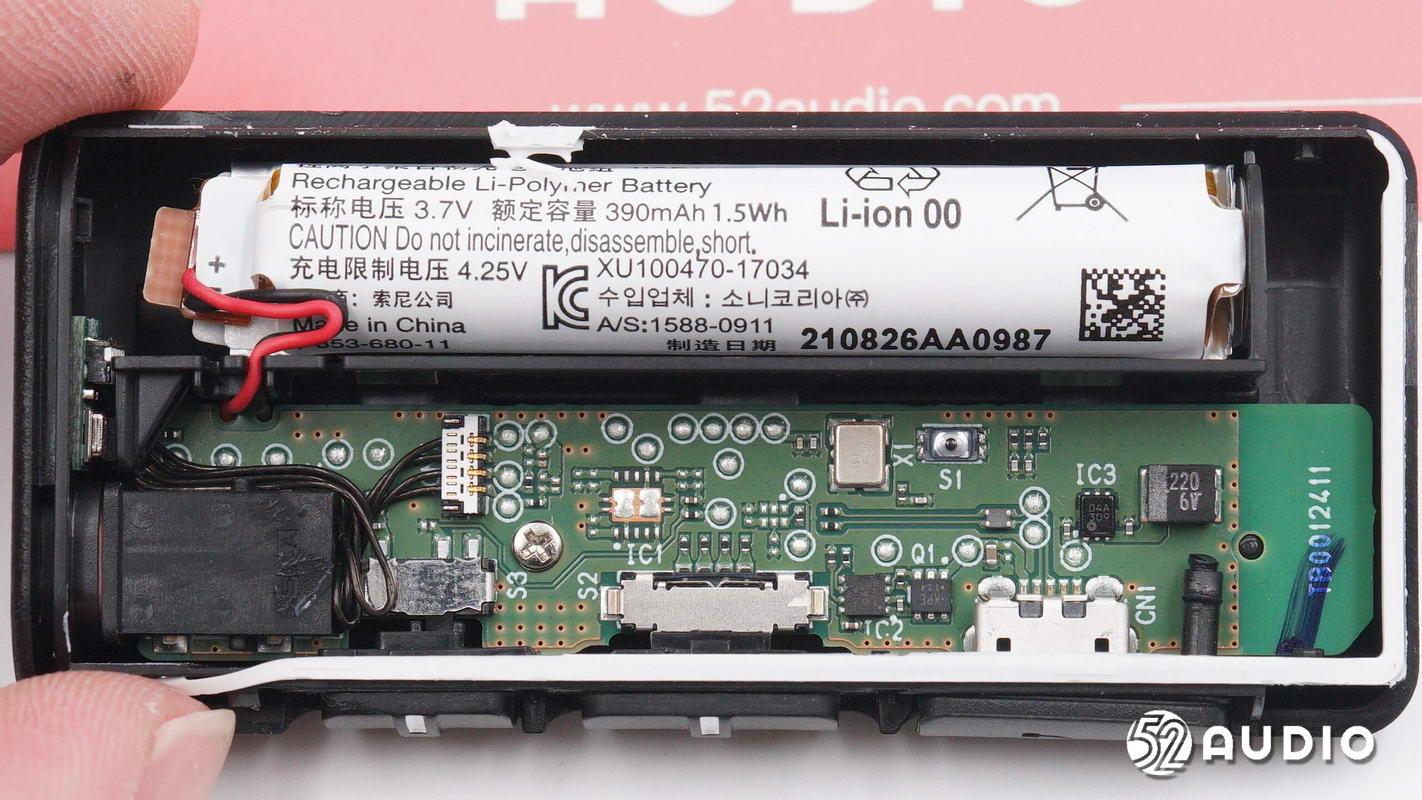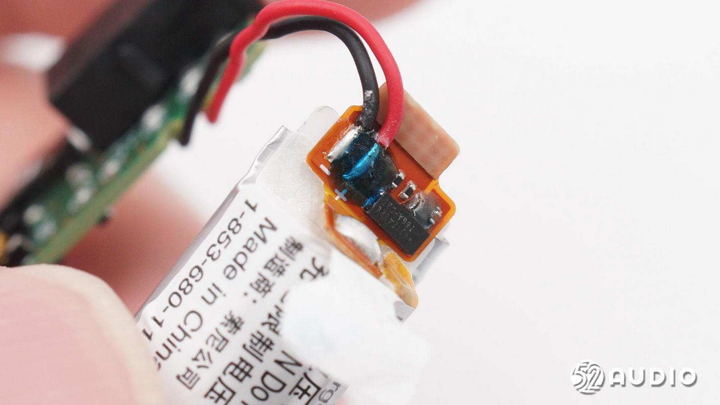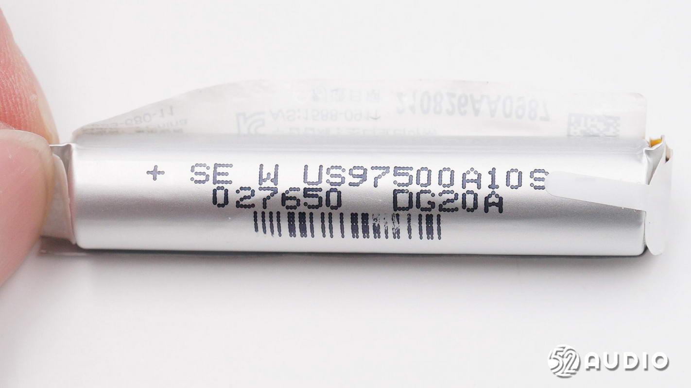 接收器锂离子电池同样来自索尼,型号LIS1652HNPC,标称电压3.7V,额定容量175mAh/0.7Wh,充电限制电压4.2V。