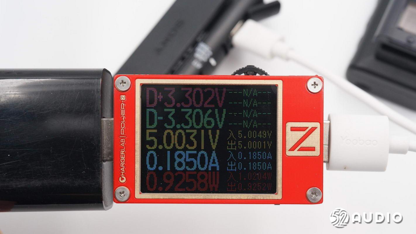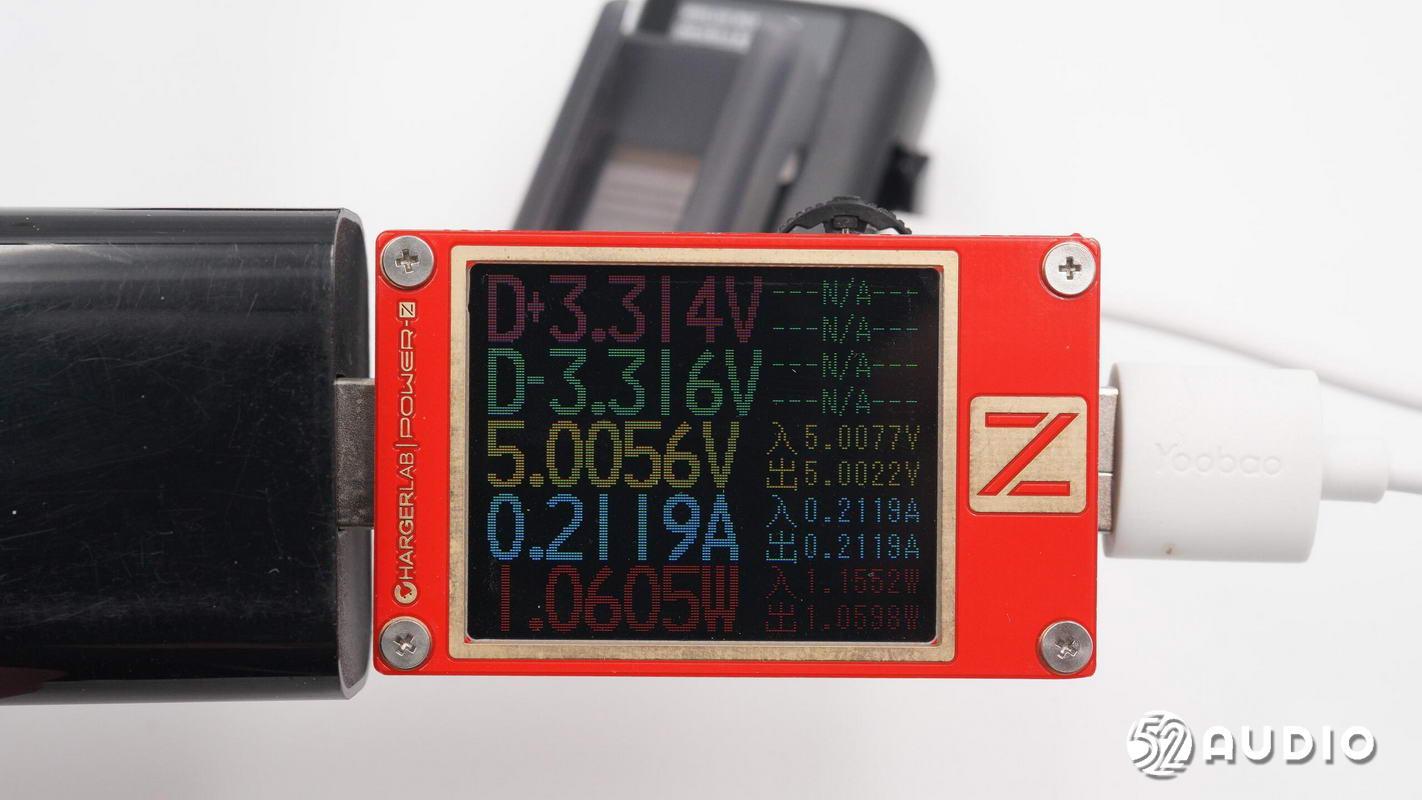 我爱音频网采用CHARGERLAB POWER-Z KM002C测试仪及标配的双口充电线,为大疆DJI MIC 2无线麦克风进行充电测试,接收器输入功率约为1.16W,发射器输入功率约为1.84W。