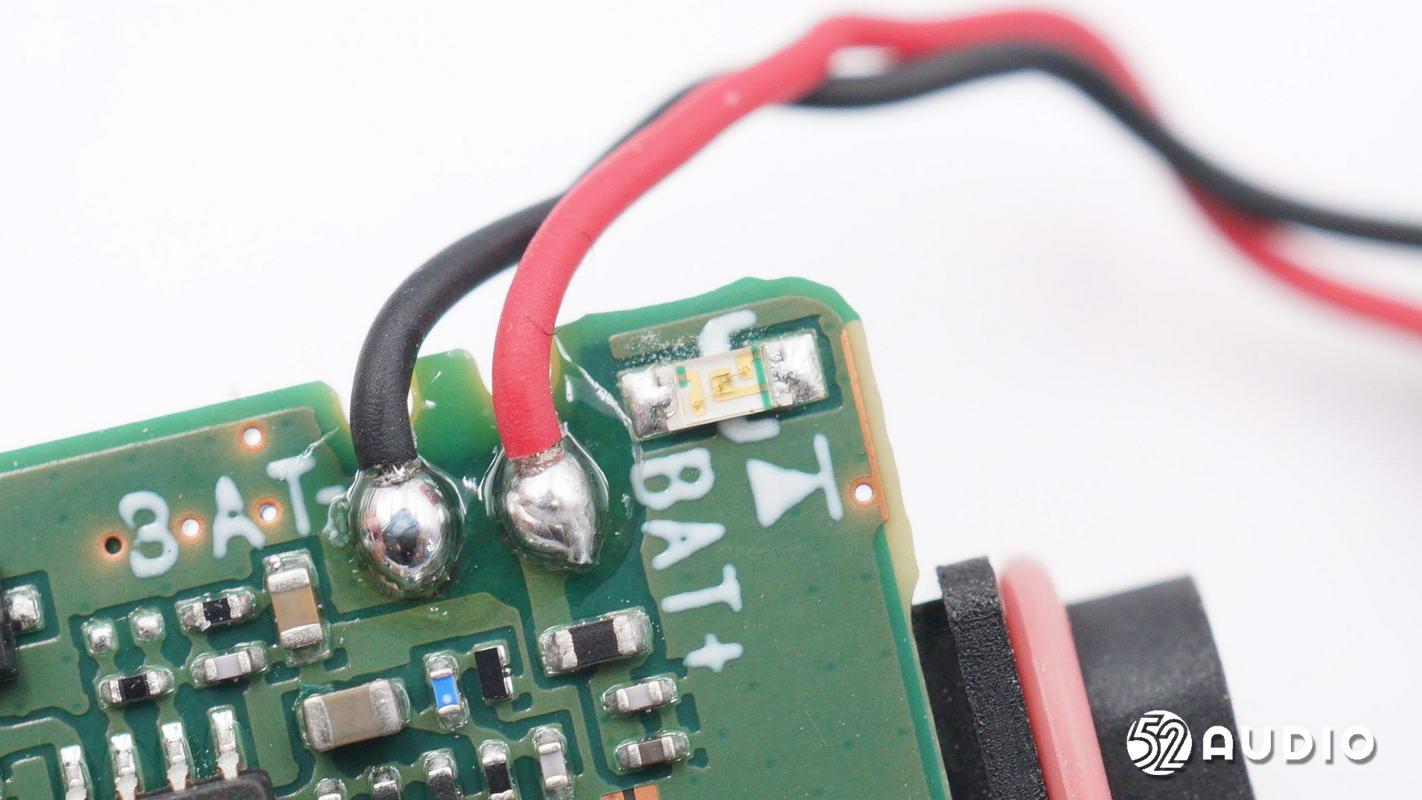电池的导线焊接在发射器主板背面,焊点饱满。